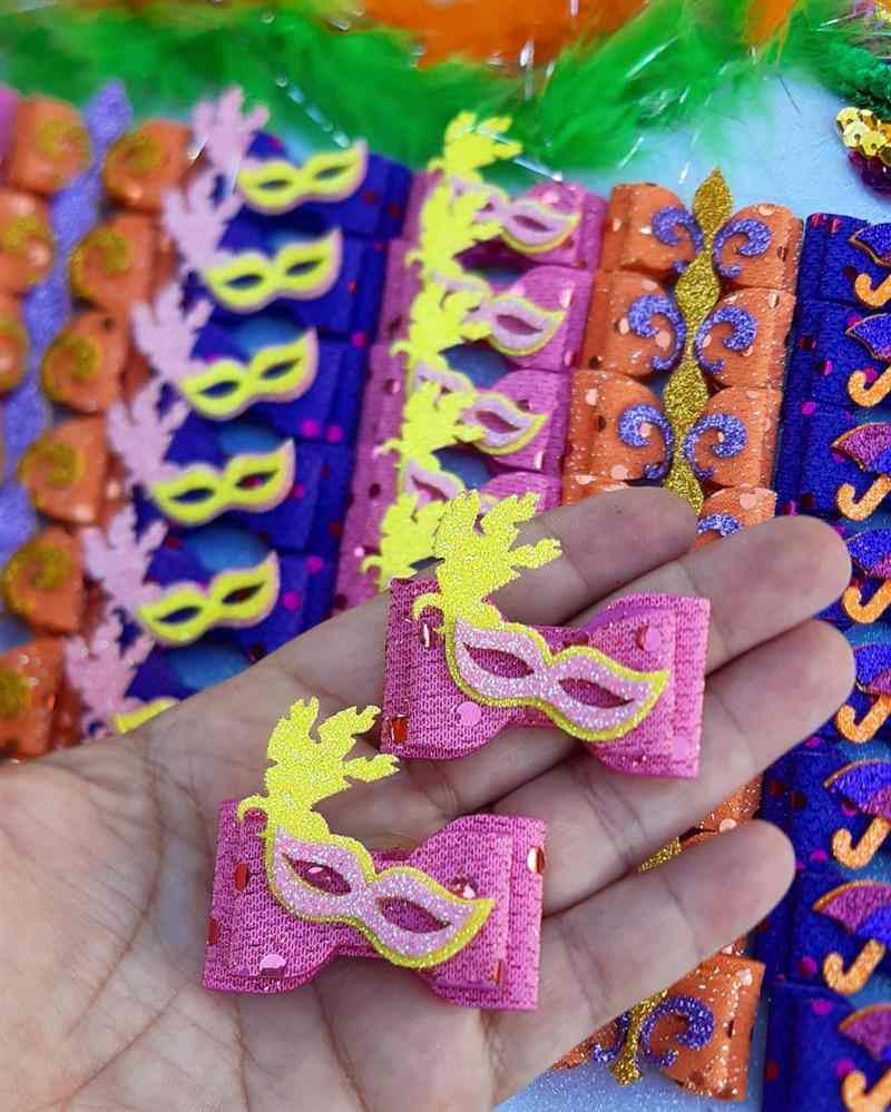 Para finalizar seu laço com estilo, cubra a emenda com pompons coloridos, strass ou outros adereços glamourosos de sua preferência. Isso trará um toque pessoal e divertido, finalizando com beleza sua criação handmade.