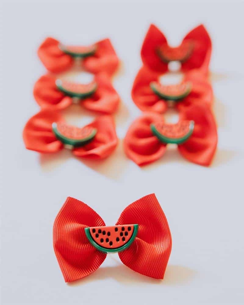 Adoramos combinar laços com flores frescas, frutas coloridas ou pedras brilhantes. São excelentes opções para criar looks marcantes e cheios de vida.