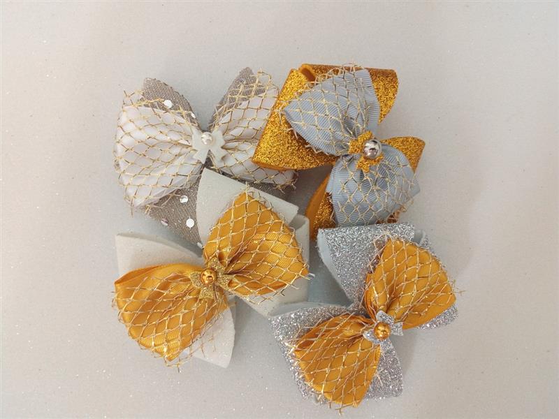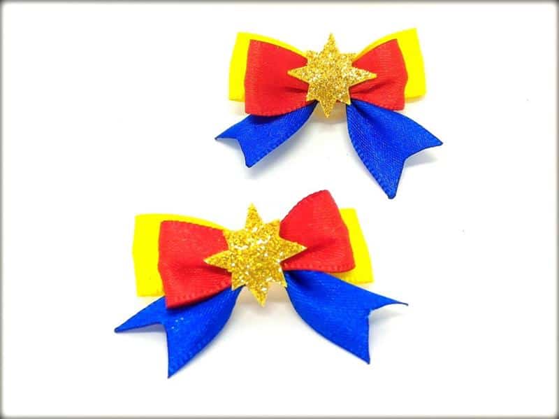 Laços especiais com fitas adesivas embutidas são vendidos para pets de pelo curto. Essas fitas permitem prender adereços nos bichinhos sem machucá-los. São itens artesanais charmosos para customizar e deixar seu animal ainda mais fofo.