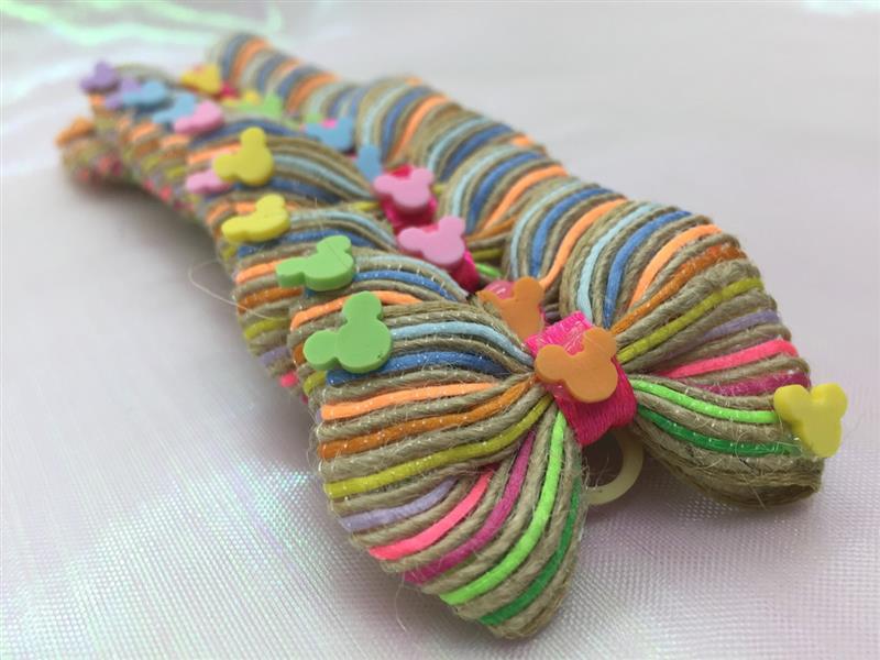 Crie um laço divertido para seu pet com fita colorida. Amarre as pontas com um elástico para fixá-lo. Decore com pompons ou contas para deixar ainda mais charmoso. Seu melhor amigo vai adorar este artesanato artesanal feito com carinho.